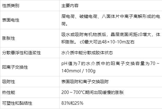1)化学组成与晶体结构 化学成分: 在四面体中,Si除了可被Al代替外,还有Fe、Ti等。在八面体中,Al可被Mg代替,也可以被Fe、Zn、Ni、Li、Cr等代替。二价阳离子Mg2+、Fe2 等代替Al3+是产生层间电荷的主要原因。 晶体结构: 蒙脱石的晶体结构与叶蜡石、滑石的晶体结构相似,均为2:1型层状结构。主要特征在于四面体中的Si可被Al代替,且一般不超过15%,八面体中的Al可被Mg、Fe、Zn、Ni、Cr等代替,置换结果都会引起电荷不平衡。蒙脱石结构层之间的层间域能吸附水分子和有机分子。 2)物化性质 蒙脱石的形态、成分和结构特点决定了它的优良吸附性、阳离子交换性、分散悬浮性、可塑性、黏结性等性质。