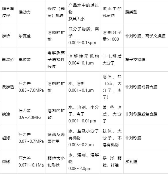 3.2 微滤膜 微滤是一种精密过滤技术,其运用的孔径范围介于 0.1~75 μm 之间,运用过程中的拦截能力来自于其对多孔材料的运用,经过物理截留的方式使得水中的杂质颗粒得到有效的去除。 在压力的作用下,无机离子、有机低分子以及溶液中水等尺寸小的物质可经过微孔运动到膜的另一侧,而大尺寸诸如水中的胶体、菌体等则因不能透过纤维墙而被截留下来,这样,就实现了不同组分的筛选目的,而且上述的过程为常温操作,微孔滤膜的截留粒子粒径为 0.1~10 μm,不会发生相态变化,更不会产生二次污染,对水的处理效果良好。 微滤膜主要分为有机微滤膜、无机微滤膜和复合微滤膜。