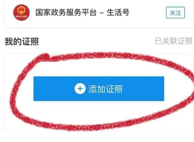 在支付宝中,不仅可以使用线上支付功能,如今还有了各种查询功能,例如电子身份证,电子结婚证等等都可通过支付宝查询,那么下面就来给大家介绍一下支付宝怎么查询电子版结婚证。 1. 打开支付宝,在首页上方搜索框内,输入“国家政务服务平台”,并在结果栏中点击带有“官方”字样的连接进入。 2. 进入后,在“我的证照”界面中点击“添加证照”选项。