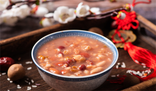 腊八粥的介绍 腊八粥又被称之为七宝粥,长生粥,还有五味粥。里面就会有各种不一样的米,其中包括玉米,大米,糯米,高粱米,黄米,还有黑米。同时还会有很多的痘,常见的有芸豆、赤豆、干豆、扁豆、绿豆、大豆。还会加上一些干果,比如桂圆、百合、核桃、花生、板栗、杏仁以及莲子。加上肉品、蔬菜之后熬煮成粥,然后送给亲友或者是一些流民。