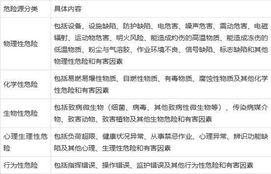 表1 危险源的分类和具体内容