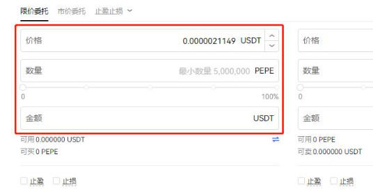 6.在限价委托中填写买入量,点击买入PEPE币,这样就能够顺利购买PEPE币了。