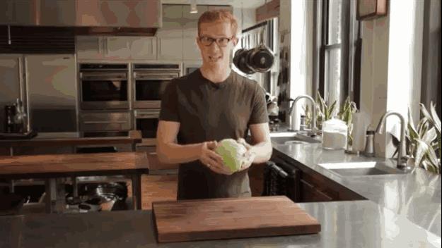 ▼手指沾水可以很轻松地抓住掉落的蛋壳。 ▼使劲的摔包菜,然后根部就很好去除了。