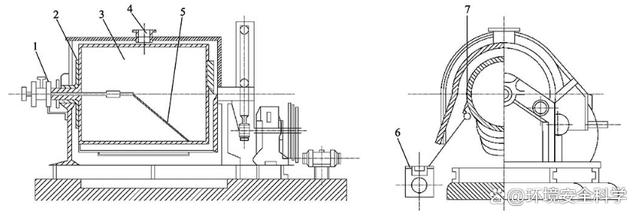 1—罩子;2—原料加入装置;3—加料器;4—刀机械;5—侧罩;6—转鼓;7—成品输送器;8—底罩