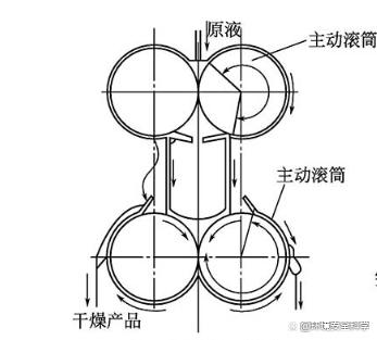 (4)多鼓干燥机 多鼓干燥机常应用于干燥带状物,如纺织品、纸张等的干燥,其工作原理和结构与单鼓、双鼓干燥机基本相同,仅转鼓转速较高,可达30~50r/min。蒸汽压力一般为0.1~0.3MPa。由于带状物料的干燥还需控制外形,因此转鼓采用滚动轴承,以减少阻力,防止在干燥过程中被拉伸变形。对于纸张等对表面光洁度有一定的要求的物料,转鼓表面要光滑和平整。 转鼓由传动装置驱动,一般为2~10r/min。布膜到干燥、卸料,一般可在5~30s完成。加热介质常采用0.2~0.6MPa水蒸气,其温度为120~150℃。 |