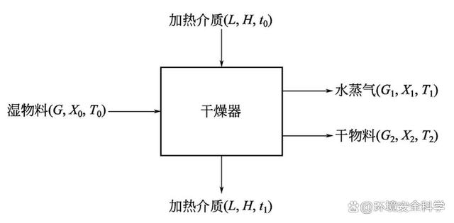 该技术之所以被称为间接加热转鼓干化技术,主要体现在湿污泥与加热介质在干燥机中不直接接触,而是通过金属壁进行换热,和列管式换热器的传热方式一样,物料与加热介质之间的传质传热关系如下。 1、物料衡算 由于是间接加热,所以污泥与加热介质之间没有传质现象,所以加热介质的流量、含水率没有发生变化。在物料侧,物料中的部分水分蒸发变为水蒸气。