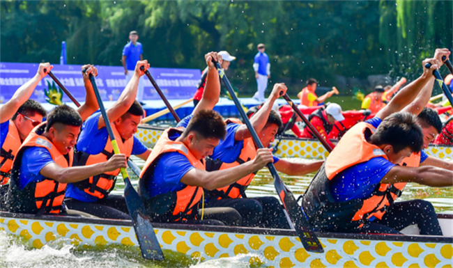 随着时间的推移,这项活动逐渐演变为一项具有竞争性的体育比赛。如今,赛龙舟已经成为端午节期间的重要节目之一,吸引着大量的观众和参与者。 在赛龙舟比赛中,一支长约12米,宽约1米的龙舟由10多名划船手协作划动。船头则有一名鼓手敲打着船上的锣鼓,既能增加声音气势,也能配合划手的节奏。此外,船身上绘制着一条形象逼真的巨龙,象征着屈原的遗体。整个比赛过程充满激烈的对抗和团队合作,吸引了大批观众的关注。 赛龙舟不仅可以增进人们之间的感情,也能够保持身体健康。在划龙舟过程中,船上的划手需要统一力量与节奏,以迅猛的速度划水前进,这对于他们的耐力、爆发力和协调能力都是一种极大的锻炼。同时,赛龙舟也成为了文化交流的窗口,吸引着越来越多的国际友人前来参与。