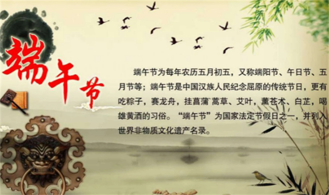 端午寓意“光宗耀祖”在古代寓意“功名得中”为了纪念屈原,更表达对健康(píng)安的美好希冀和向往。端午主要的习俗有赛龙舟、吃粽子、采草药、挂艾草与菖蒲、拜神祭祖、跳钟馗等,端午节是中国传统的重要节日之一,也是世界非物质文化遗产。