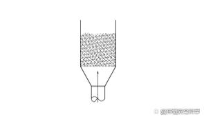 2)第二阶段——流化床 当处于固定床阶段的流体流速继续增加,达到B点并超过B点以后,各固体颗粒之间就会产生位置移动,若流体速度还继续增加,而床层的压力损失保持不变,固体颗粒在床层中就会发生不规则运动,此时床层就处于流态化,即为流化床。固体颗粒运动的剧烈程度随着流体流速的增加而增加,在流速的一定范围内,固体颗粒仍停留在床层内而不被流体所带走。如图2所示它是不定型的,能随着容器的形状而改变,具有液体的流动性。在固体颗粒物料的特性、床层的几何尺寸和流速一定时,则该系统有确定的性质,如密度、导热性、比热容和黏度。而随流速的增大,床层的高度和空隙率也随之增大,但流体通过床层的压力损失ΔP的大小却与床层中固体颗粒的质量保持相当,基本上不随流速的增大而发生变化,这时在床层中能保持一个能见到的固体颗粒界面。