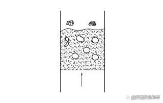 产生沟流的原因一般有:a.物料潮湿,易结块,在床层中料层厚薄不均匀,从而在床层薄、结块少的局部产生沟槽;b.料层颗粒度的分布不均,其中细小颗粒含量过高,且流体流速较低;c.由于气体分布板设计不合理或孔板上的开孔数较少,故气体分布不均匀。 欲消除沟流现象,一般必须增加流速或改善分布板设计,而且污泥不能太湿,必要时可在床层内加设搅拌装置。在工艺操作上,可以采用先送气后加料的方式。 2)腾涌 在流化床内固体颗粒大小分布不均匀、气体通过分布板不均匀、流化床的高度与直径比值较大等因素,会使床层内的气泡汇合长大,直至气泡直径大到接近于床层内径时,由于气速较大,固体颗粒在床内就会形成活塞状向上运动,当气泡在密相界面上破裂时,颗粒会被向上抛出很高,小颗粒被气流所夹带,然后较大的颗粒纷纷落下,如此往复循环,就会使固体颗粒与干燥介质流体接触不良,干燥效率降低,这种现象即称为腾涌,见图6。