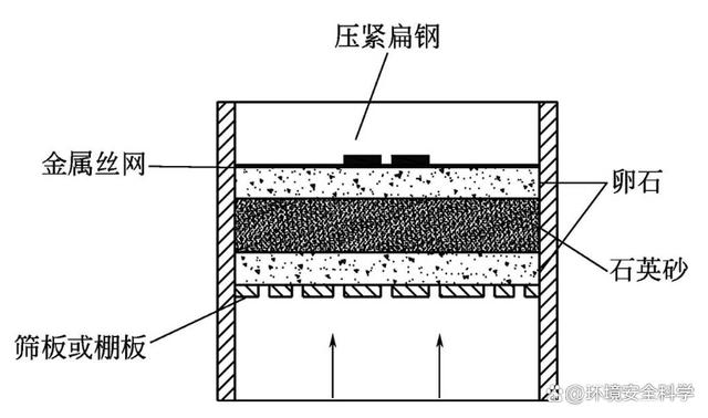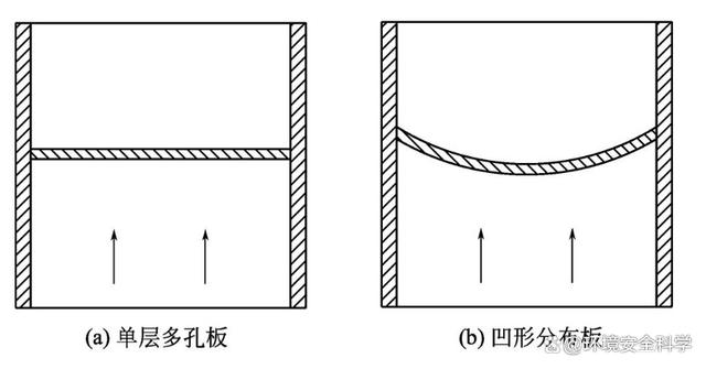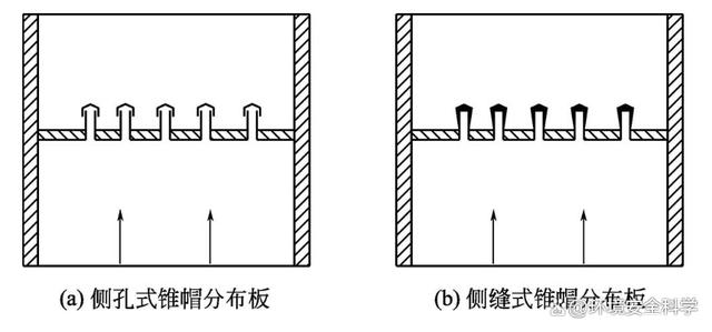 在结构设计中,主要讨论分布板、隔板和溢流堰的设计。 (1)分布板 在流化床中,分布板的作用除了支撑固体颗粒、防止漏料外,还有分散气流使气体得到均匀分布的作用。但一般分布板对气体分布的影响通常只局限在分布板上方不超过0.5m的区域内,床层高度超过0.5m时,必须采取其他措施,改善流化质量。 设计良好的分布板,应对通过它的气流有足够大的阻力,从而保证气流均匀分布于整个床层截面上,也只有当分布板的阻力足够大时,才能克服聚式流化的不稳定性,抑制床层中出现沟流等不正常现象。试验证明,当采用某种致密的多孔介质或低开孔率的分布板时,可使气固接触非常良好,但同时气体通过这种分布板的阻力较大,会大大增加鼓风机的能耗,因此通过分布板的压力降应有个适宜值。据研究,适宜的分布板压力降应等于或大于床层压力降的10%,并且其绝对值应不低于3.5kPa 。床层压力降可取为单位截面上的床层重力。 工业生产用的气体分布板形式很多,常见的有直流式、侧流式和填充式等。直流式分布板如图1所示。单层多孔板结构简单,便于设计和制造,但气流方向与床层垂直,易使床层形成沟流;小孔易于堵塞,停车时易漏料。多层孔板能避免漏料,但结构稍微复杂。凹形多孔分布板能承受固体颗粒的重荷和热应力,还有助于抑制鼓泡和沟流。侧流式分布板如图2所示,在分布板的孔上装有锥形风帽(锥帽),气流从锥帽底部的侧缝或锥帽四周的侧孔流出。目前这种带锥帽的分布板应用最广,效果也最好,其中侧缝式锥帽采用最多。填充式分布板如图3所示,它是在直孔筛板或栅板和金属丝网层间铺上卵石-石英砂-卵石。这种分布板结构简单,能够达到均匀布气的要求。