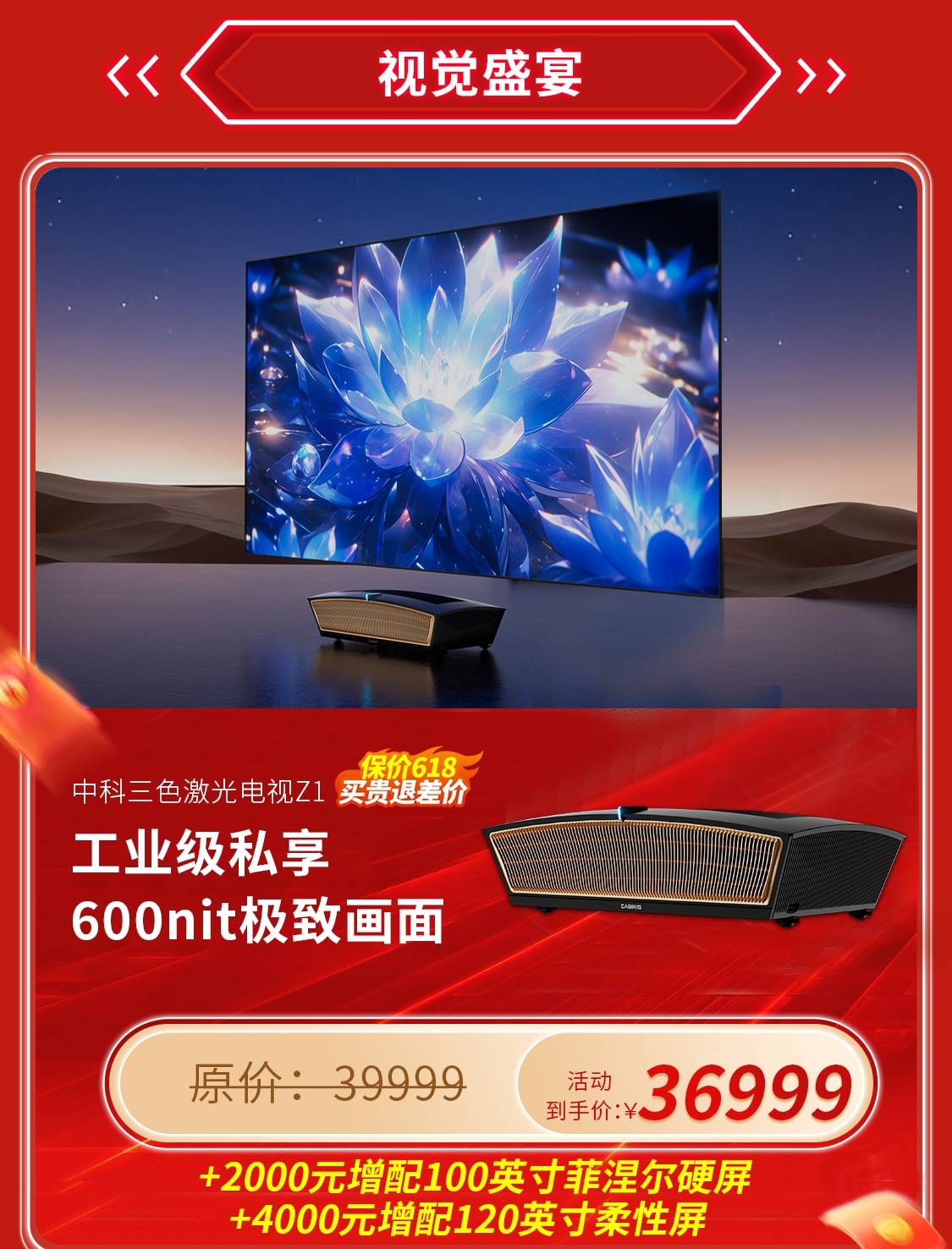 面对显示技术的突破性进程,市场消费者中的科技爱好者们也纷纷尝试,这次618年中活动,中科极光激光电视也以利好消费者的优惠政策限时开售!