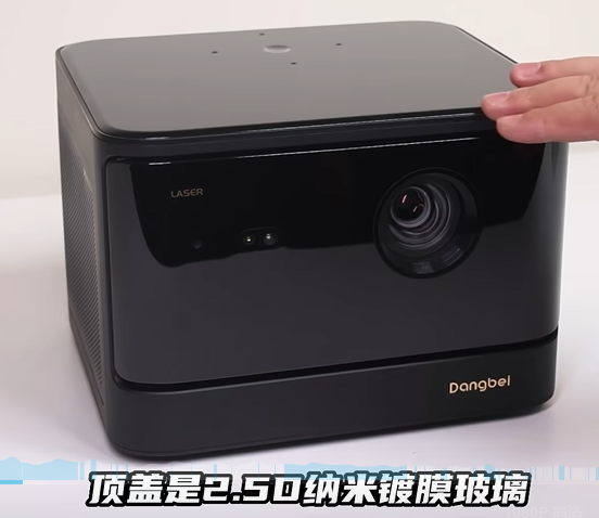 当贝X系列扛把子,顶盖是2.50纳米镀膜玻璃,手感温润如玉,没有晦涩感。前面板投射镜头TOF镜头在全黑面板下尤为亮眼,金属光机引擎,悬浮面板,耐刮耐摩擦,好看兼顾实用。左侧是出风口,右侧是进风口,音频视频接口在后面板。