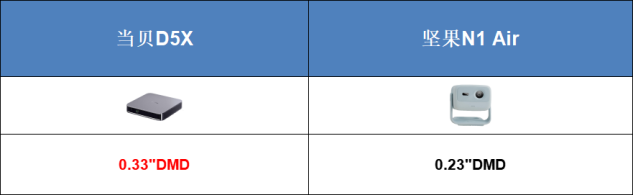 因此当贝D5X的芯片尺寸优于坚果N1 Air。