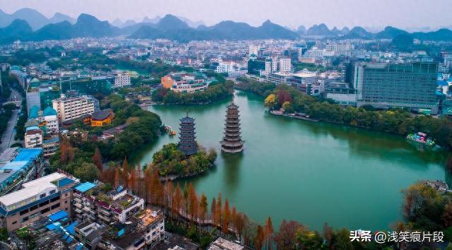 8. 桂林市中心的杉湖和榕湖:杉湖和榕湖是桂林市中心的两个著名景点,是游客来桂林旅游的好去处。杉湖和榕湖以其美丽的湖泊和周围的风景而闻名,是游客来桂林旅游的好去处。