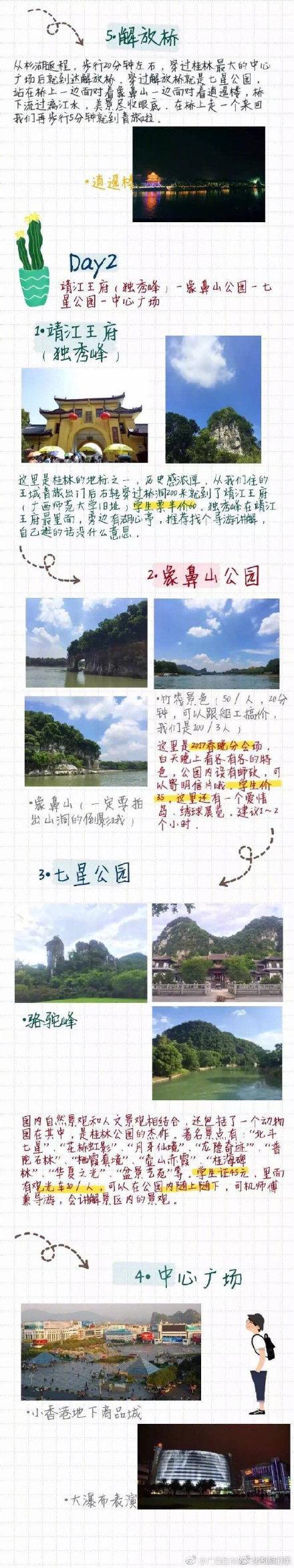 旅游提示【超详细的桂林旅游攻略来啦,教你如何花最少的钱玩转桂林,还不赶快收藏起来】有网友整理了一份七天六夜的桂林阳朔山水游记,人均消费仅3000元,不仅涵盖了象鼻山、七星公园、龙脊梯田、漓江竹筏、兴坪古镇、十里画廊、西街等桂林各色景点,还贴心地标出了跟团旅游、交通等注意事项。收下这份旅游攻略,有时间叫上亲朋好友一起去旅游吧(via:是鹿啊LIAJIN)