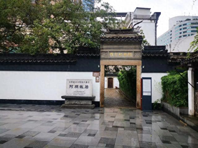 从地铁口出来,经过街边崇安寺,往前高楼转弯,就是阿炳故居。高楼下是一个商场,和阿炳故居之间,是一个开阔的二泉广场。今天是7月28日,台风杜苏芮在福建登陆,无锡也受影响,不但有雨,风也蛮大,撑个伞都感到风的压力。