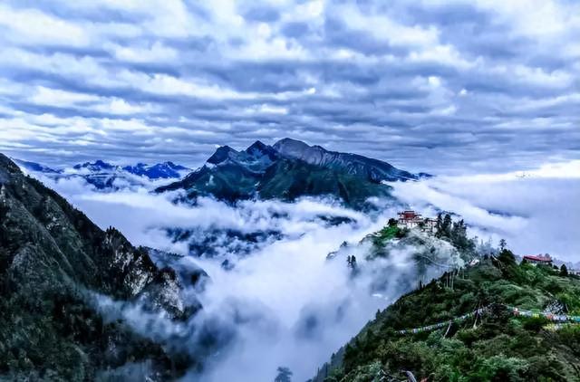 在崇山峻岭之上,这片金碧辉煌、白墙红檐的藏式庙宇,给人以超凡脱俗之感,无论气势或气派都丝毫不逊任何庙堂。
