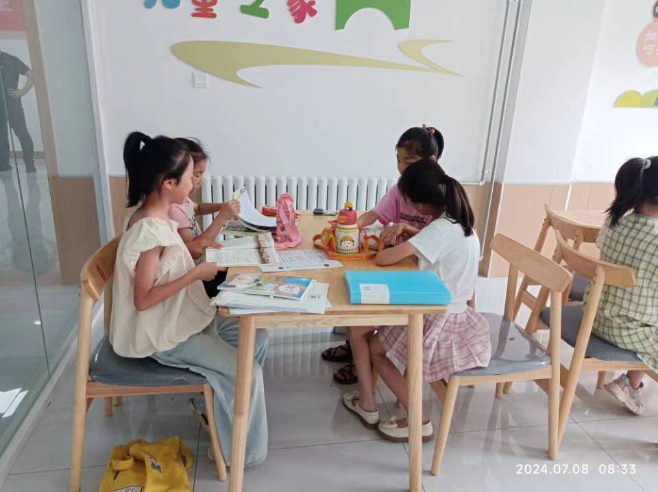 学校与社区联动,在劝学里社区内开放了活动自习室,在为期两个月的暑假期间,学生们将被分成不同的学习小组,围绕数学、语文、英语等核心科目,以及科学探究、艺术创作、体育锻炼等多元化内容展开学习和实践。