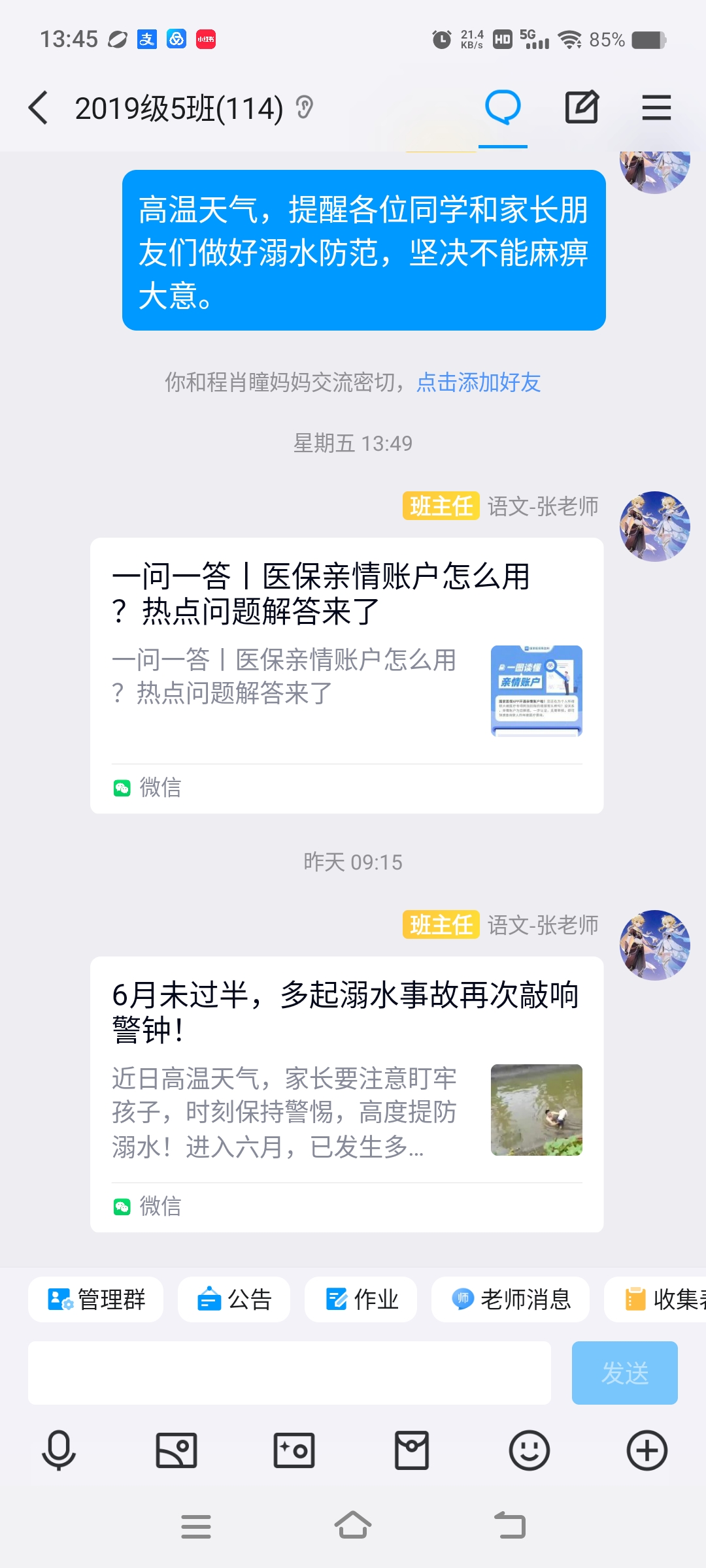 此外,学校还向家长们推荐公益课堂,宣传防溺水知识,提醒家长们切实承担起监护责任,加强对孩子的安全教育和管理。学校还建立了家校联动机制,通过QQ群等方式,及时进行防溺水教育提醒,共同筑牢安全防线。