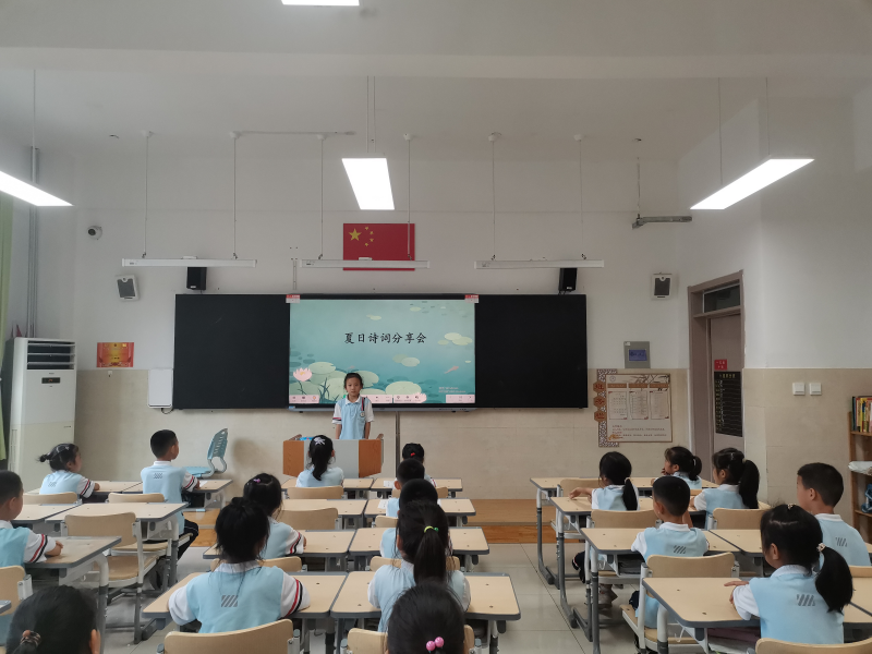 绚丽夏日,如诗如歌。为营造良好的“书香校园”文化氛围,传承中国文化经典,体会诗词的魅力,济南高新区遥墙中心小学一年级各中队开展“夏日诗词分享会”活动,让学生们通过诗词,感受夏天的诗韵,感知夏天之美。
