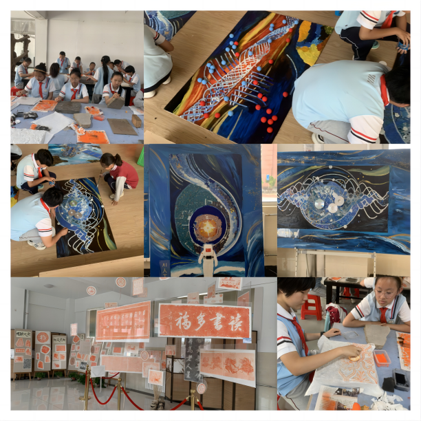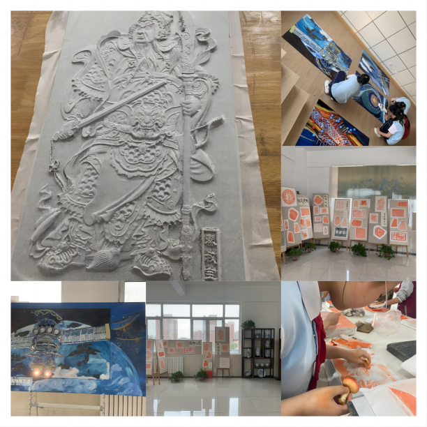 我校参赛展览的作品包括 :班级手工作品《艺术之光》,高水平绘画作品《中国力量》,高水平手工作品《传拓石狮》,高水平摄影作品一组,传拓工作坊传拓作品展示。