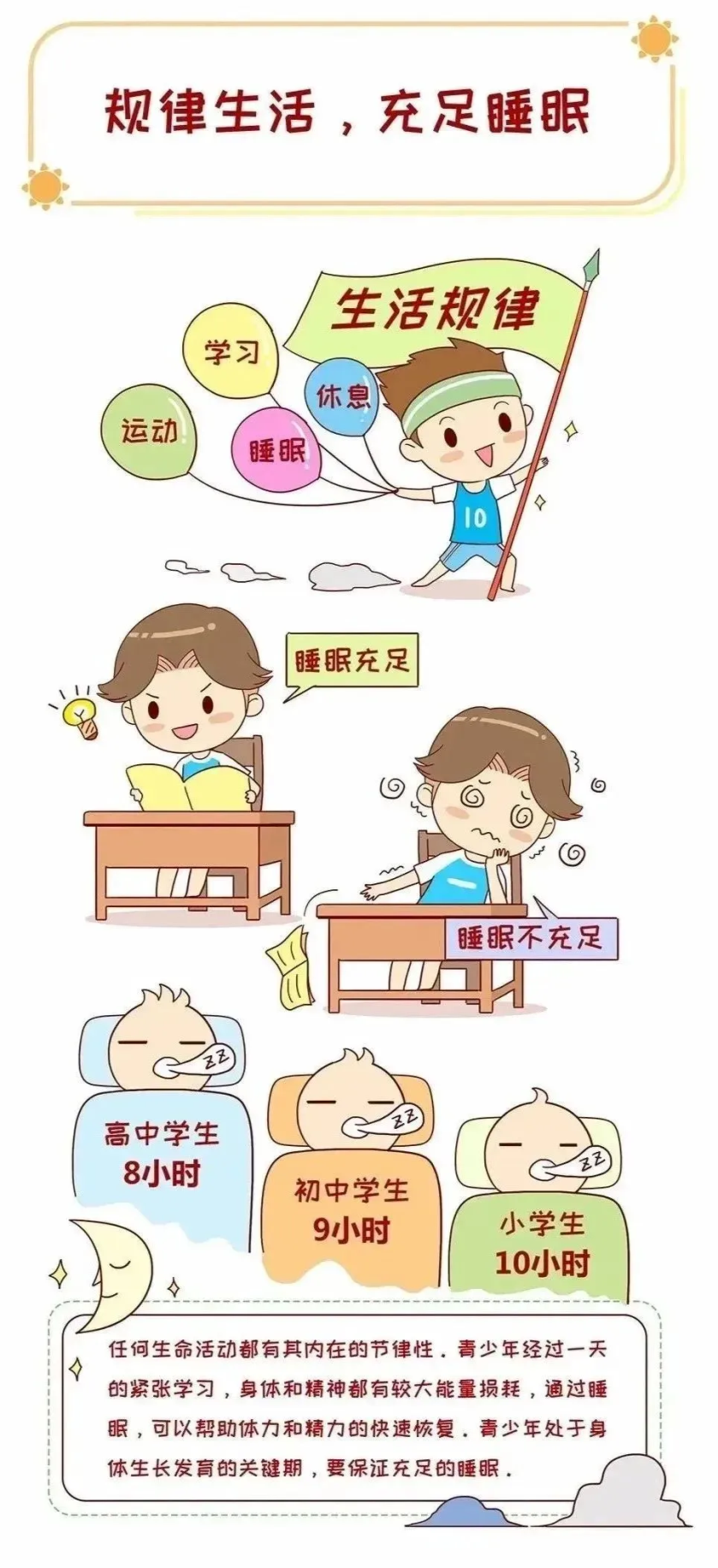 为贯彻落实教育部《关于进一步加强中小学生睡眠管理工作的通知》和《山东省普通中小学办学基本规范》等有关规定,为保证学生享有充足睡眠时间,促进学生身心健康发展,高新区遥墙中心小学为学生和家长朋友们准备了一份“科学睡眠管理指南”,共同助力孩子健康成长。