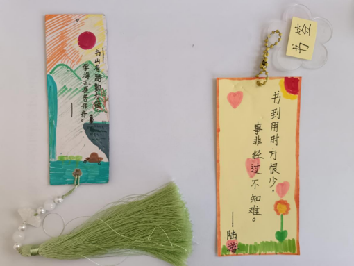 书签,书写着阅读的思绪,承载着读者对书籍的热爱。三年级孩子的书签制作,不仅让阅读有了一份庄重与仪式,更是增添了几分阅读的情趣。愿孩子乘着书签之舟在书海里遨游,与书本同行,让阅读融进血液,让书香飘满心房。