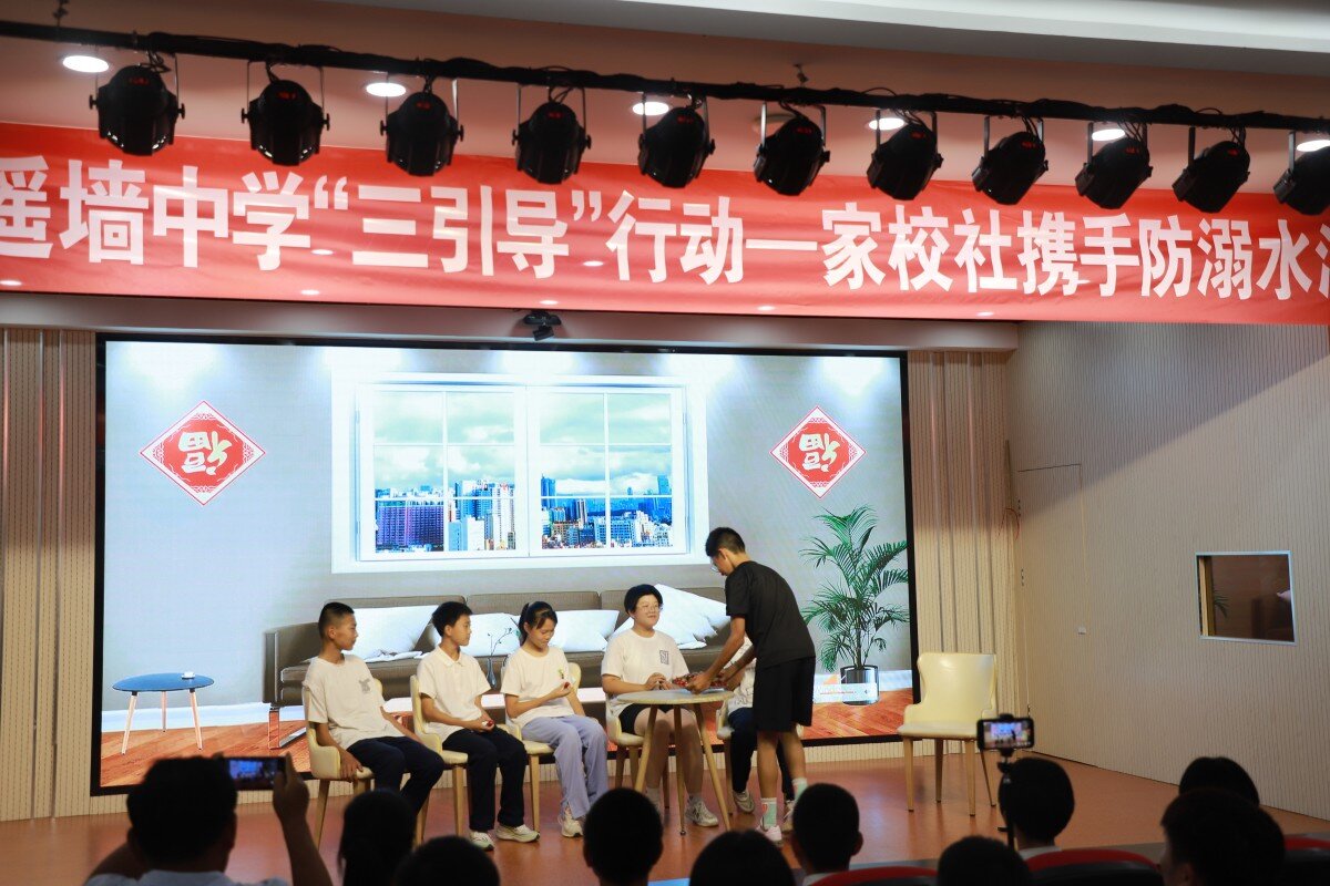 酷夏来临,学生涉水、嬉水、游泳行为增多,溺水事件进入高发期。为了有效预防和减少溺水事件,提高未成年人的水域安全意识和自救互救能力,济南高新区管委会教育文体部联合遥墙街道办事处在遥墙中学举行“济南高新区校家社共上一趟防溺水课”活动,活动以主题班会展示的形式进行。高新区管委会教育文体部、遥墙街道办事处分管领导以及社区代表、学生家长代表参加了活动。