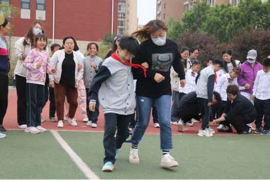 本次校园开放活动还邀请家长共同参与了我校的体育艺术节。当运动员入场曲的旋律响起,我校亲子运动会开幕式隆重开幕。比赛开始,整个运动场上处处洋溢着家长和孩子们的欢声笑语,家长和孩子们都热情地参与其中,“袋鼠跳”、“两人三足”、“拔河”、“背球跑”等游戏如火如荼的开展,气氛紧张而激动,二人同心,其利断金,蹦跳之间,家长和孩子密切配合,他们不断加油喝彩,不断助威鼓劲。