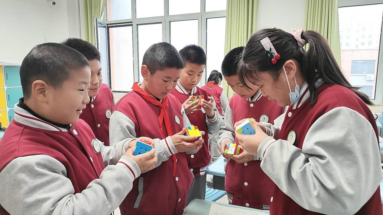 魔方,一个令无数人着迷的智力玩具,被誉为“指尖上的智慧奇迹”。在“双减”政策的推动下,济南高新区遥墙中心小学追求让学生在活动中学习,实践中提升。特开展了“玩转魔方”综合实践主题活动,以此丰富校园文化,提升学生的创新思维和动手能力,引领学生进入奇妙的魔方世界。