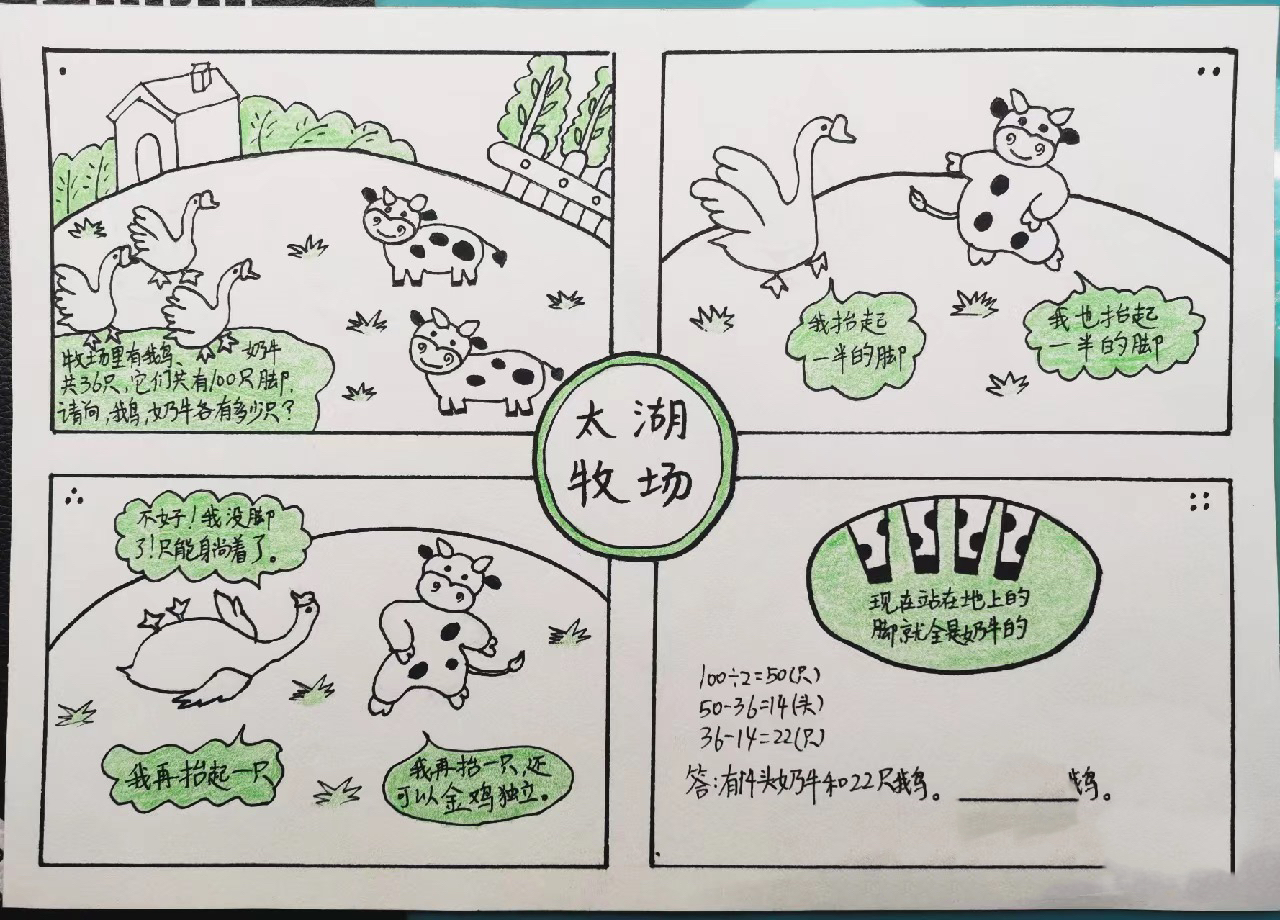 每一幅漫画作品,都蕴含着孩子们的智慧,以及对数学的思考。数学漫画在传递数学知识的同时,也在传递数学思考方法,在学生的具体形象思维和数学思想方法之间架起了一座桥梁。