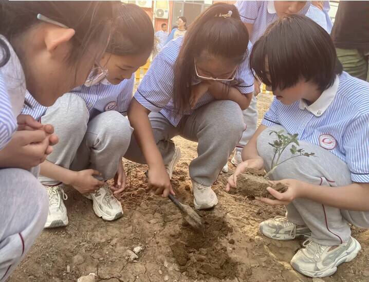 4月18日,时值谷雨节气来临之际,济南高新区遥墙中学也抓住谷雨春种的最佳时机,将“小菜园”化身劳动教育“大课堂”,让学子们走出课堂,走进自然,通过小菜园让同学们去嗅触泥土的芬芳,感知植物的生长,在实践中收获劳动的乐趣与价值。