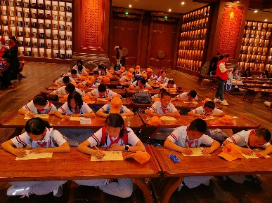 队员们走进大学堂仁厅,静心止语,手执毛笔,体验做圣人的学生,抄写《论语》,将圣人教诲铭记于心。
