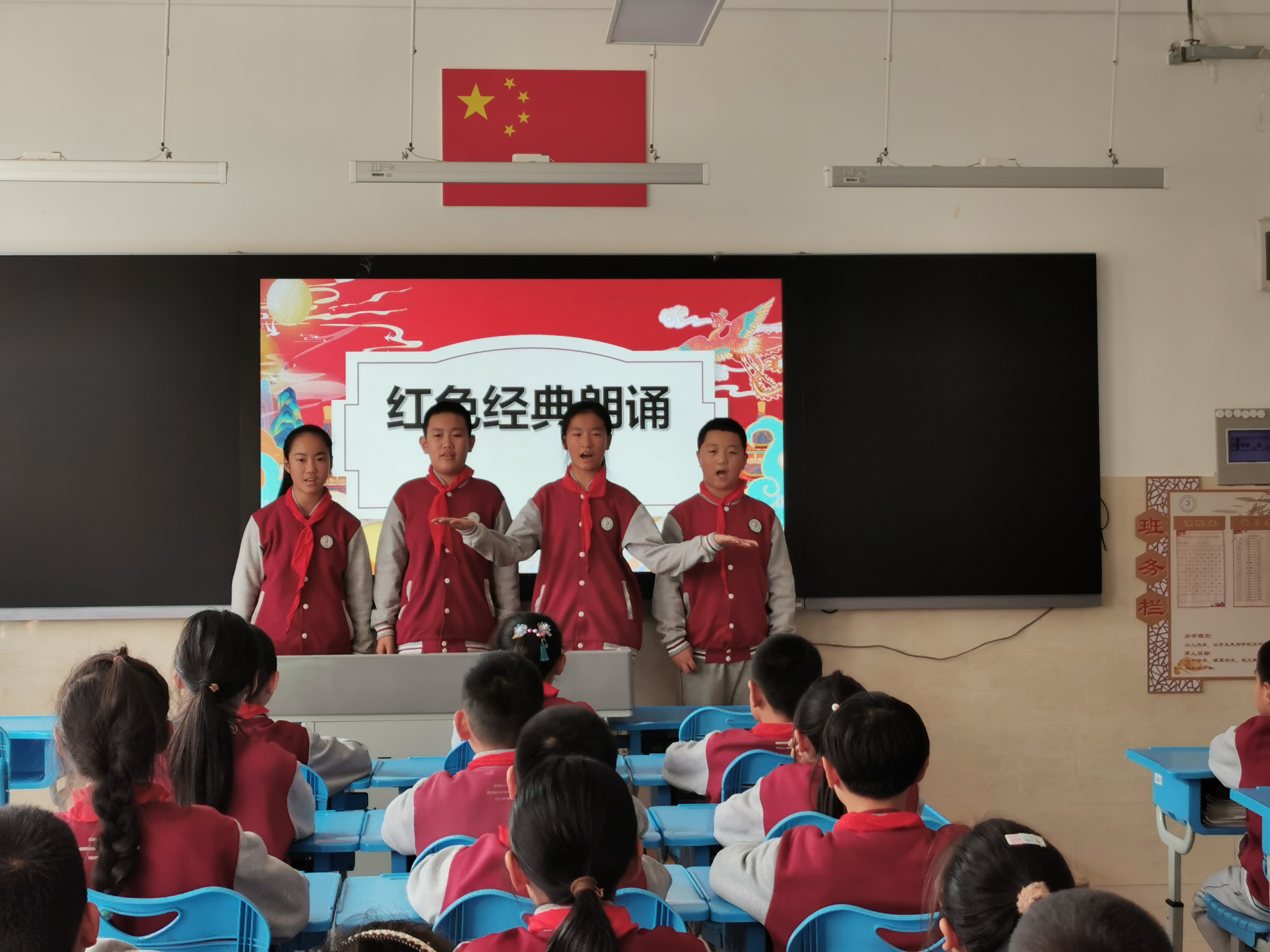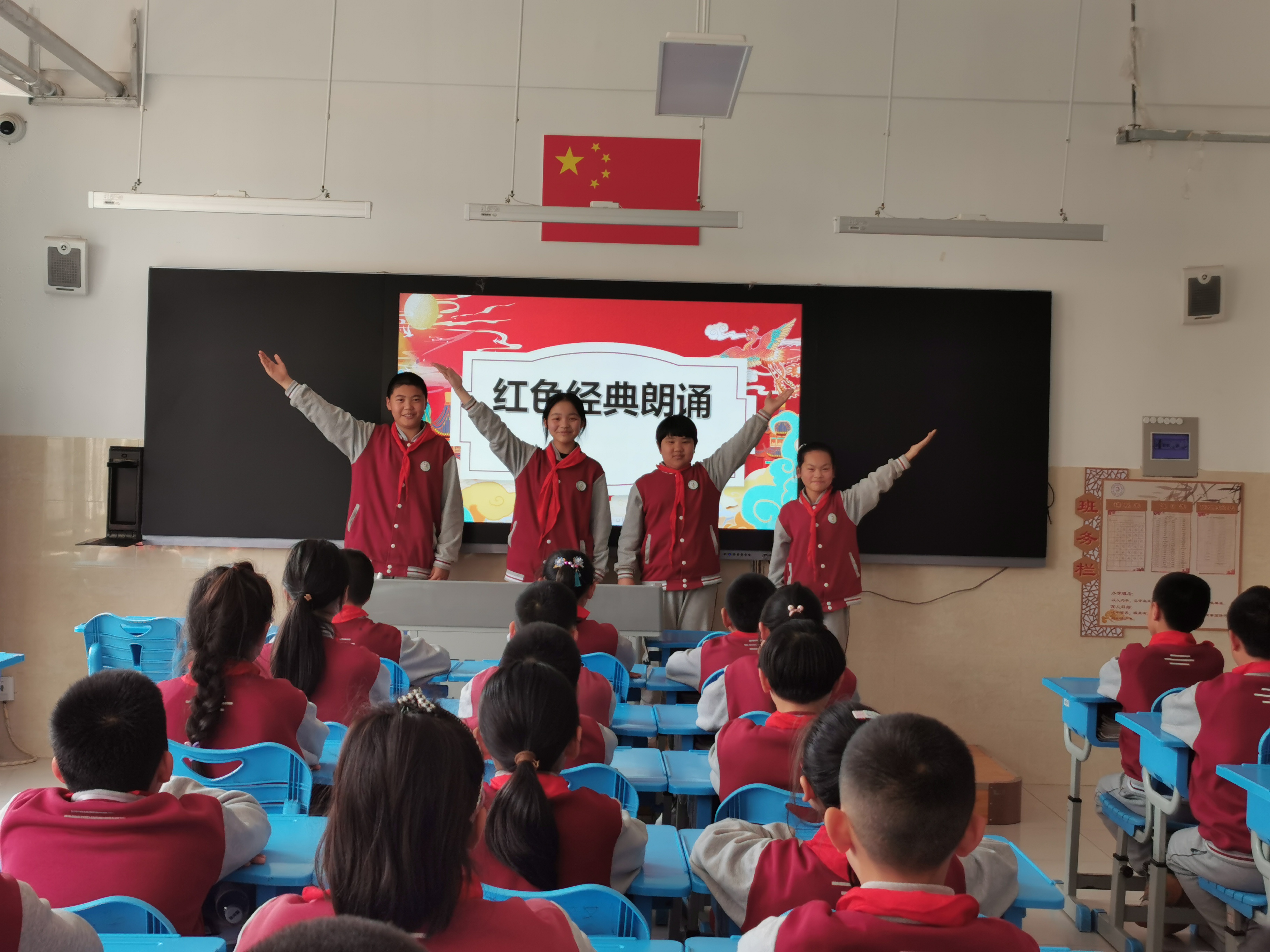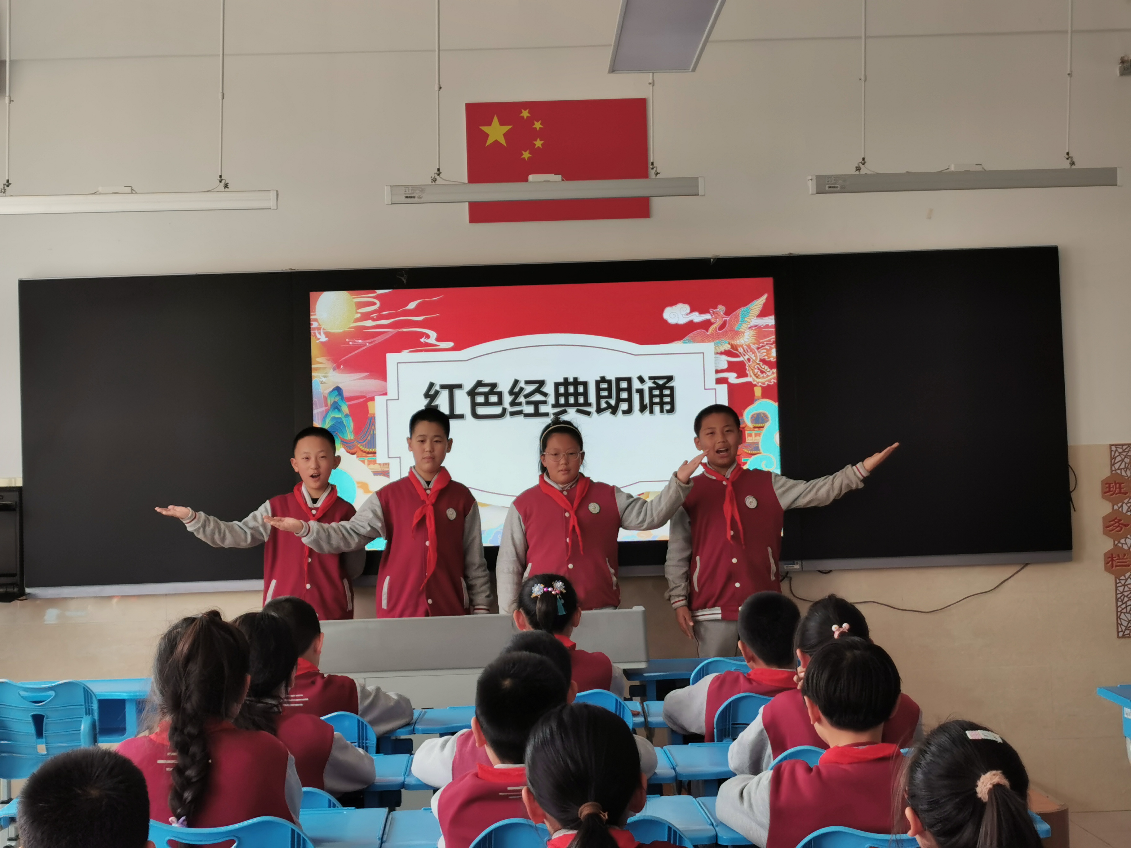 近日,济南市高新区遥墙中心小学五年级四班举行了“诵读红色经典 传承红色基因”朗诵比赛活动。全班6个参赛小组配乐朗诵红色经典诗词,他们用细腻的情感、饱满的热情在舞台上一展风采。