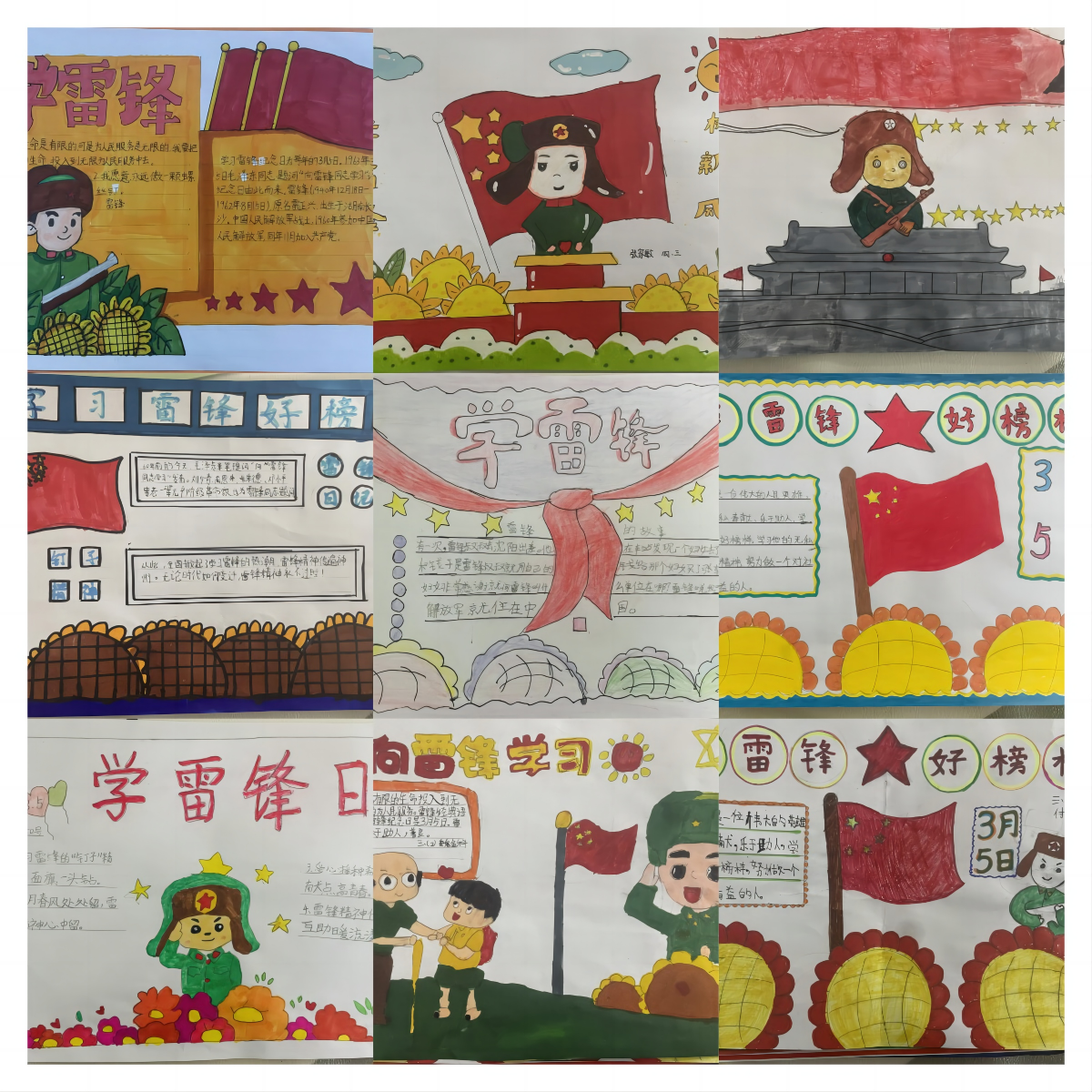 队员们还绘制了学雷锋手抄报、主题绘画等作品,用自己的画笔、文字走近雷锋,了解雷锋,处处彰显着学雷锋、树新风的决心。