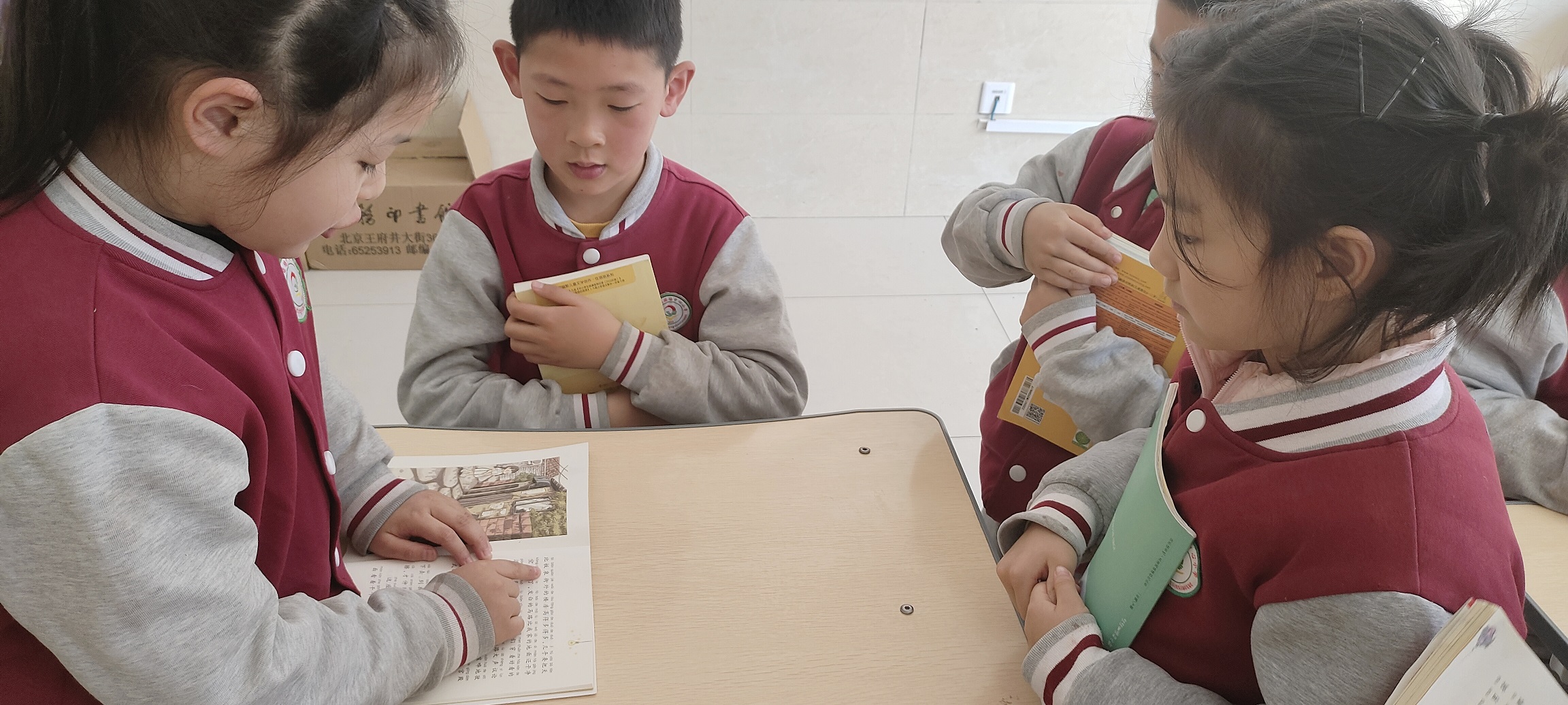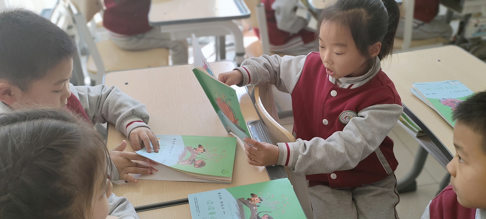 学生就寒假期间阅读过的绘本、儿歌、童谣在小组内相互讨论交流,分享阅读感受,交换想法,把读书的乐趣分享给身边的同学。