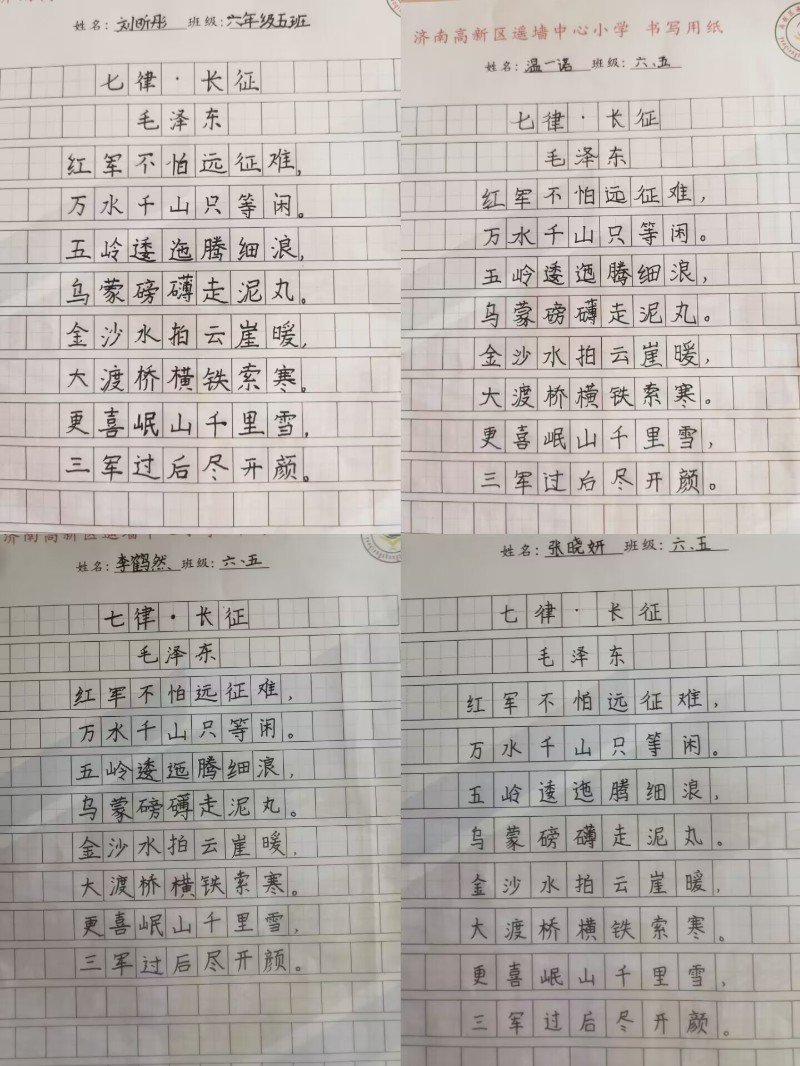 书法教育对于中国人而言,不仅仅是一种技能的学习,也是一种文化的修炼、精神的陶冶。学习、练习书法是一个漫长的过程,需要同学们静下心来,一笔一画认真书写,更需要有恒心、有毅力。利用寒假,济南高新区遥墙中心小学六年级的同学们坚持每天练字,在练习书法的过程中培养毅力与持之以恒等优秀品格,陶冶情操,提高对美的感受力,这是练习书法带给同学们最珍贵的礼物。