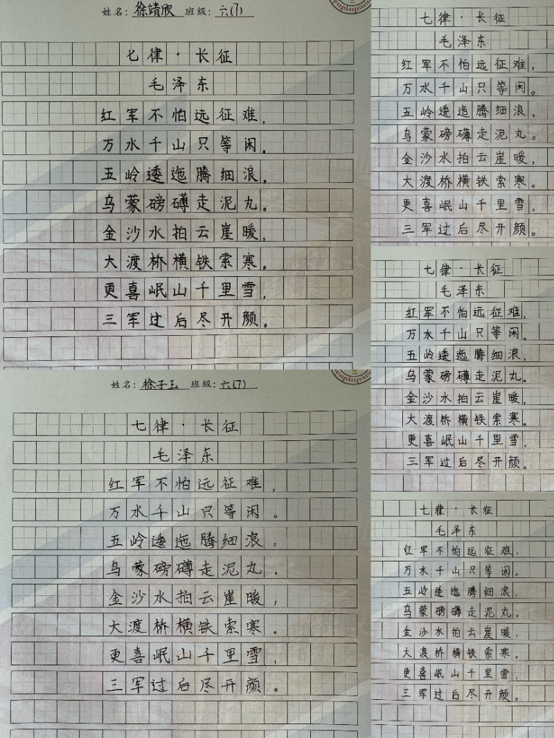 假期里,学生用心书写每一个笔画、每一个汉字,凝神聚气,点横撇捺,尽情挥洒。学生坚持每日练习硬笔书法和软笔书法,经过一个假期的练习,学生们逐渐掌握书法的要领,思想认识和书写水平得到一定提升。