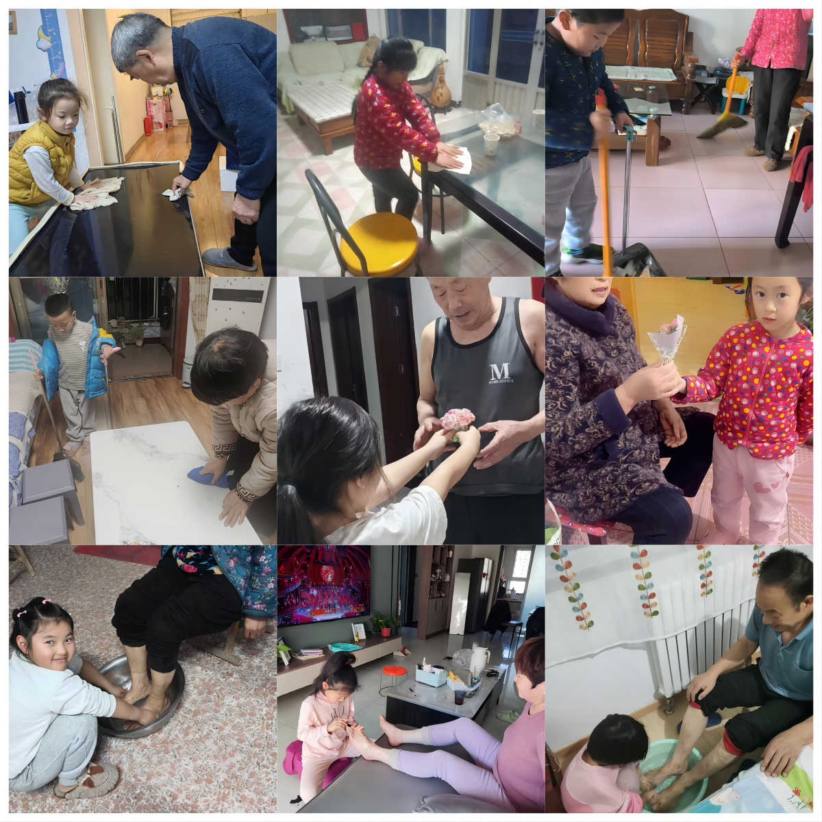尊亲孝亲,是任何家庭里永恒不改的话题;敬老爱老,是任何社会中体现文明的标度。孩子们用自己的实际行动表达了对自己爷爷奶奶、外公外婆的情感,更能把享受“长辈的爱”的感情进行迁移,让孩子们去爱自己身边的每一位老人,帮助需要帮助的人,在生活中自然地走进感情的世界,体验幸福生活的喜悦。同时,老人们也为自己孩子的成长与进步感到欣慰与骄傲。