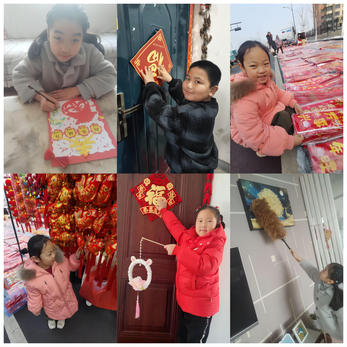 活动内容丰富多样,包括除尘、购买年货、贴春联、贴福字等环节。在除尘环节中,学生们在家中帮助家长打扫卫生,清理家居环境,以驱除旧年的晦气,迎来新年的好运。他们认真地打扫每一个角落,不仅培养了劳动习惯,也体会到了传统年俗的深刻内涵。
