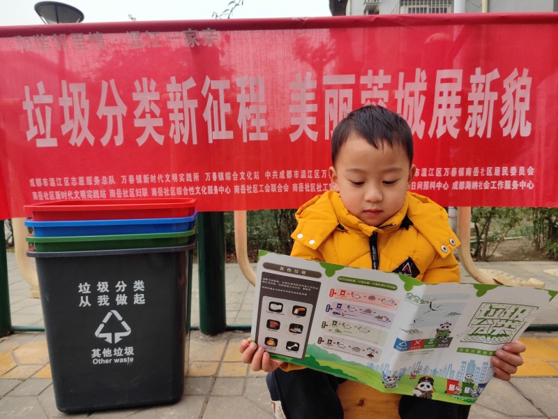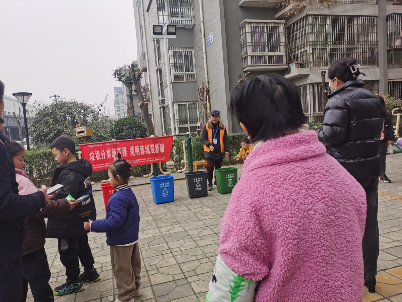 2024年1月13日,成都市温江区万春镇南岳社区联合成都海纳社工、南岳社区第六网格微网格员、四川荣程英联华物业服务有限公司在万家华庭广场开展主题为“垃圾分类新征程·美丽蓉城展新貌”的垃圾分类宣传活动。