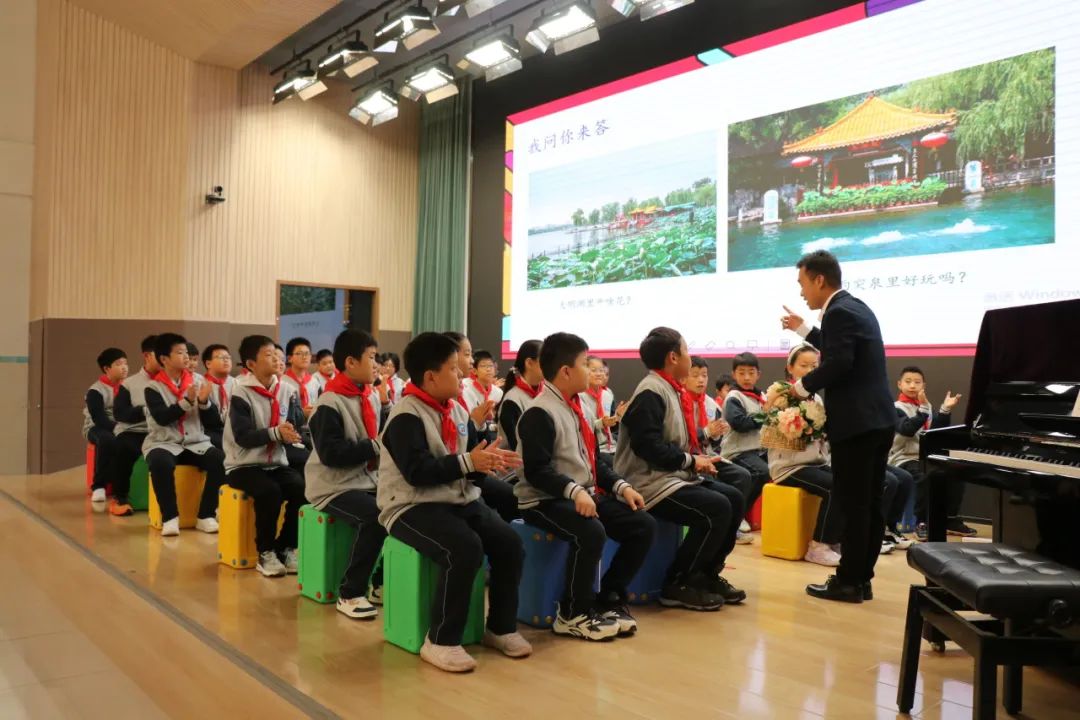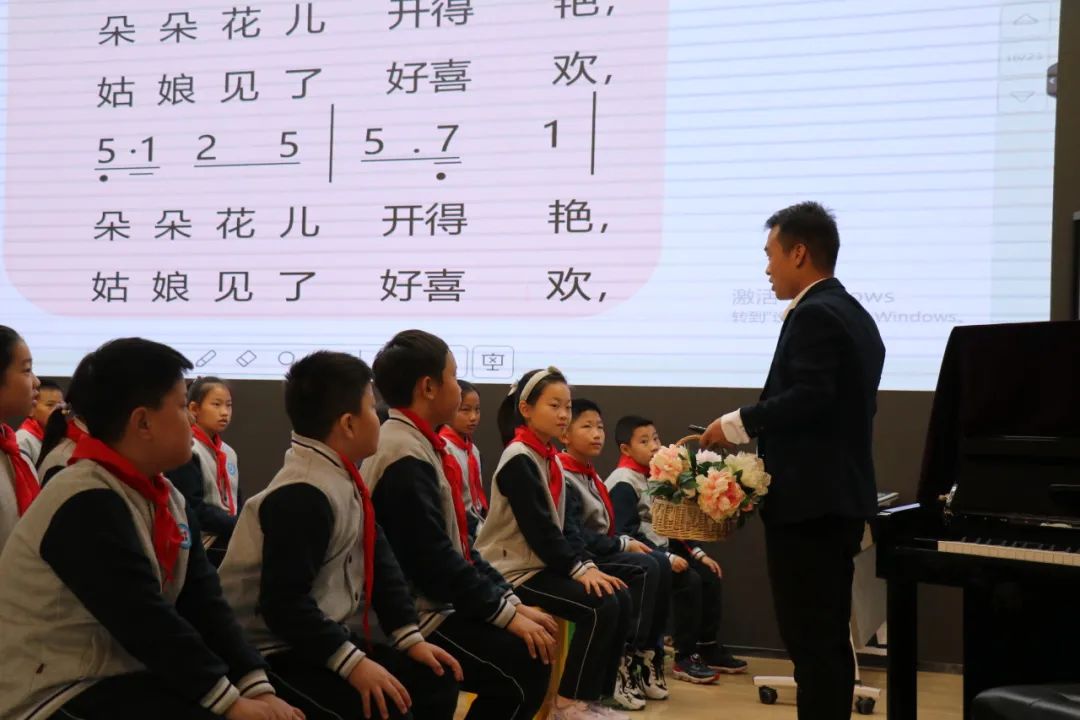 为深化课程与教学改革,进一步落实小学音乐学科“新课标 新课堂”学科核心素养,促进音乐教师的专业化成长,济南高新区遥墙中心小学李振海老师执教河南民歌《编花篮》一节。