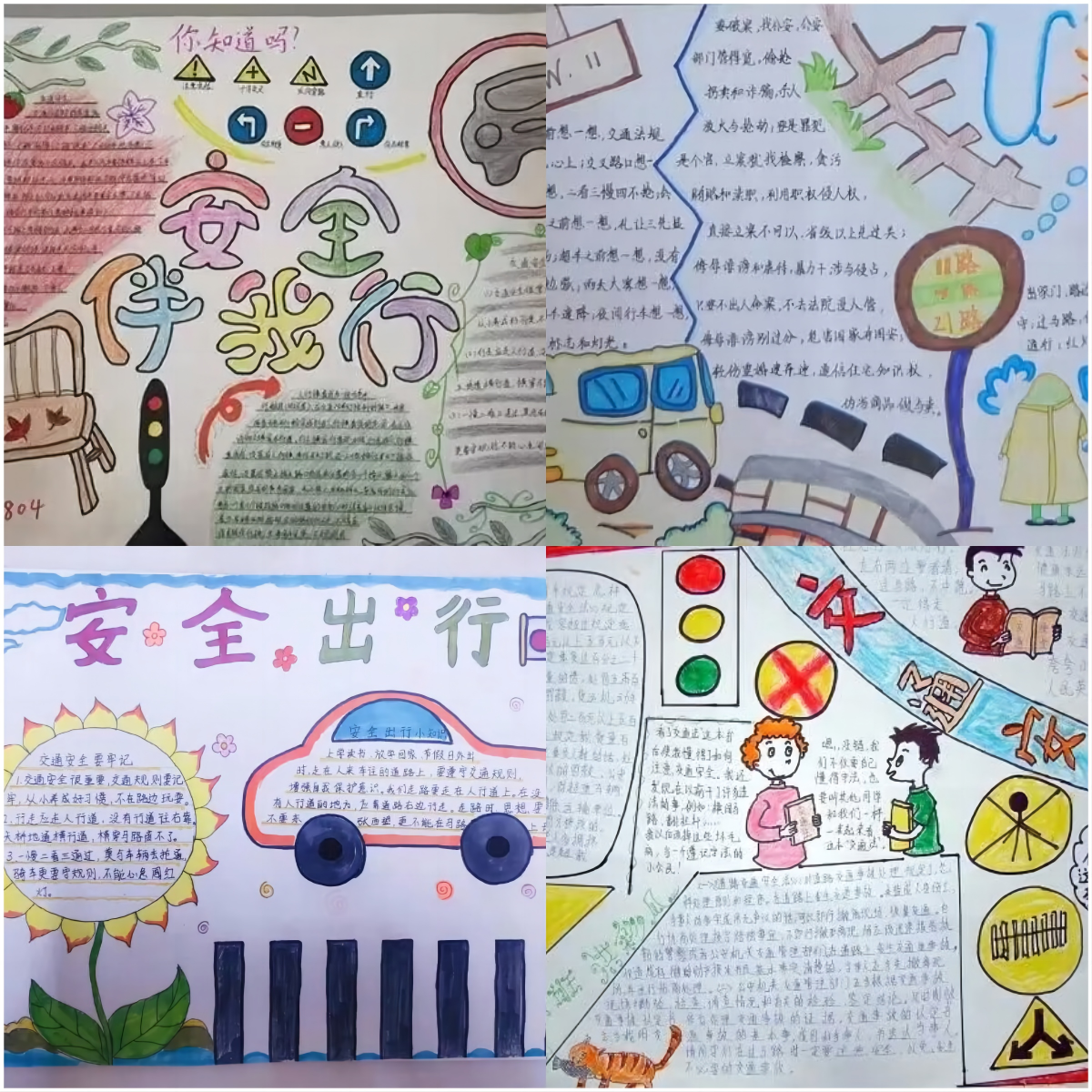 同学们将交通安全教育牢记心中,并绘制精美手抄报。