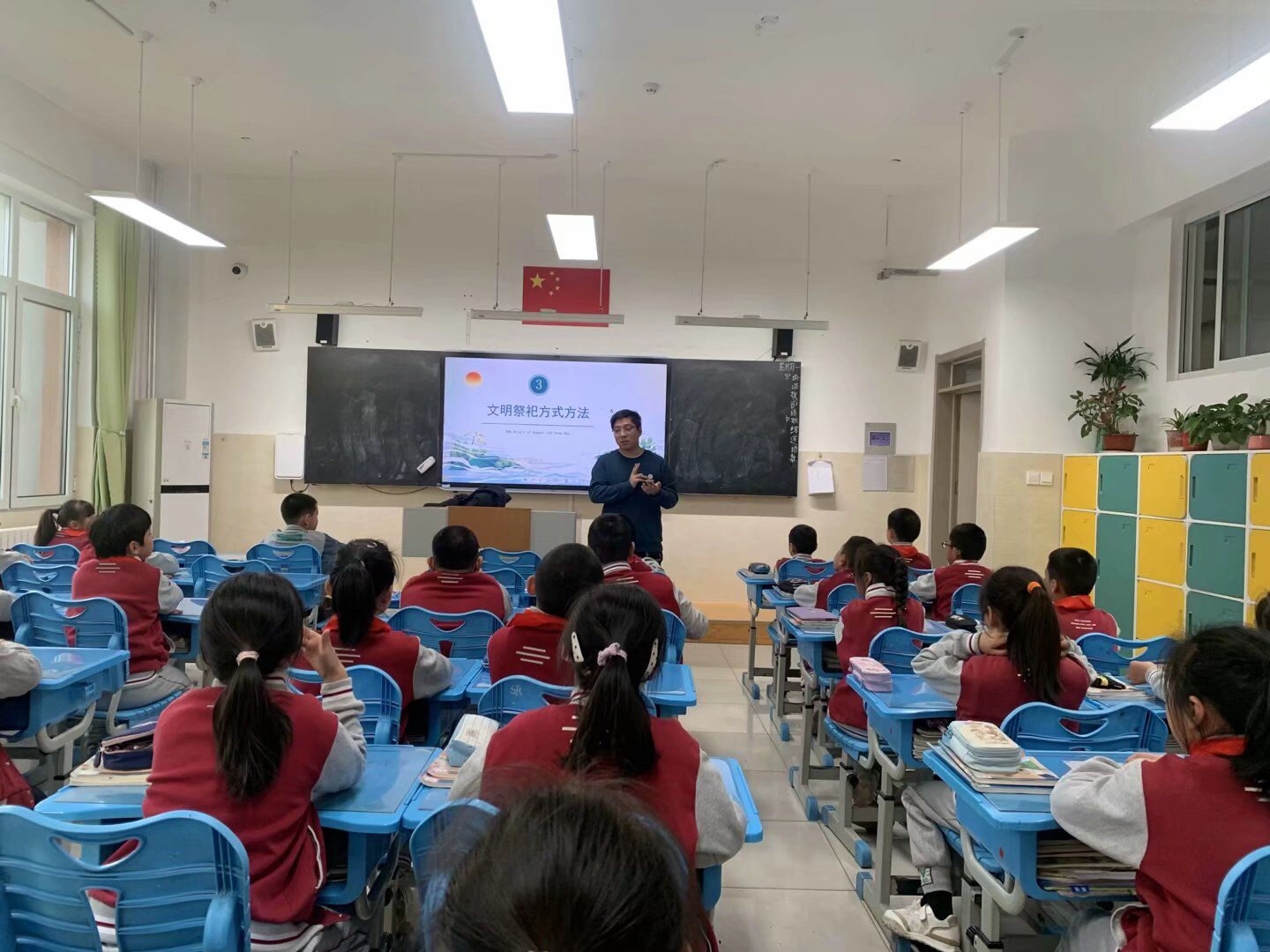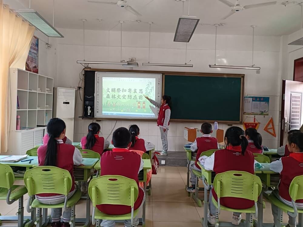 班会活动中,各班主任通过视频、图片形式宣传不文明祭祀引发森林火灾的案例及相关的法律法规,让学生增强森林防火意识,进一步提高安全用火、安全避火的能力。并倡导学生,文明祭祖,不烧纸钱,不燃放鞭炮,发现火灾及时报警。“绿色”“低碳”“简洁”这些环保理念已深入人心,越来越多的人在祭祀活动中崇尚“文明祭祀”,提倡用网络祭祀、献花等有益于保护生态环境的文明方式祭祀。