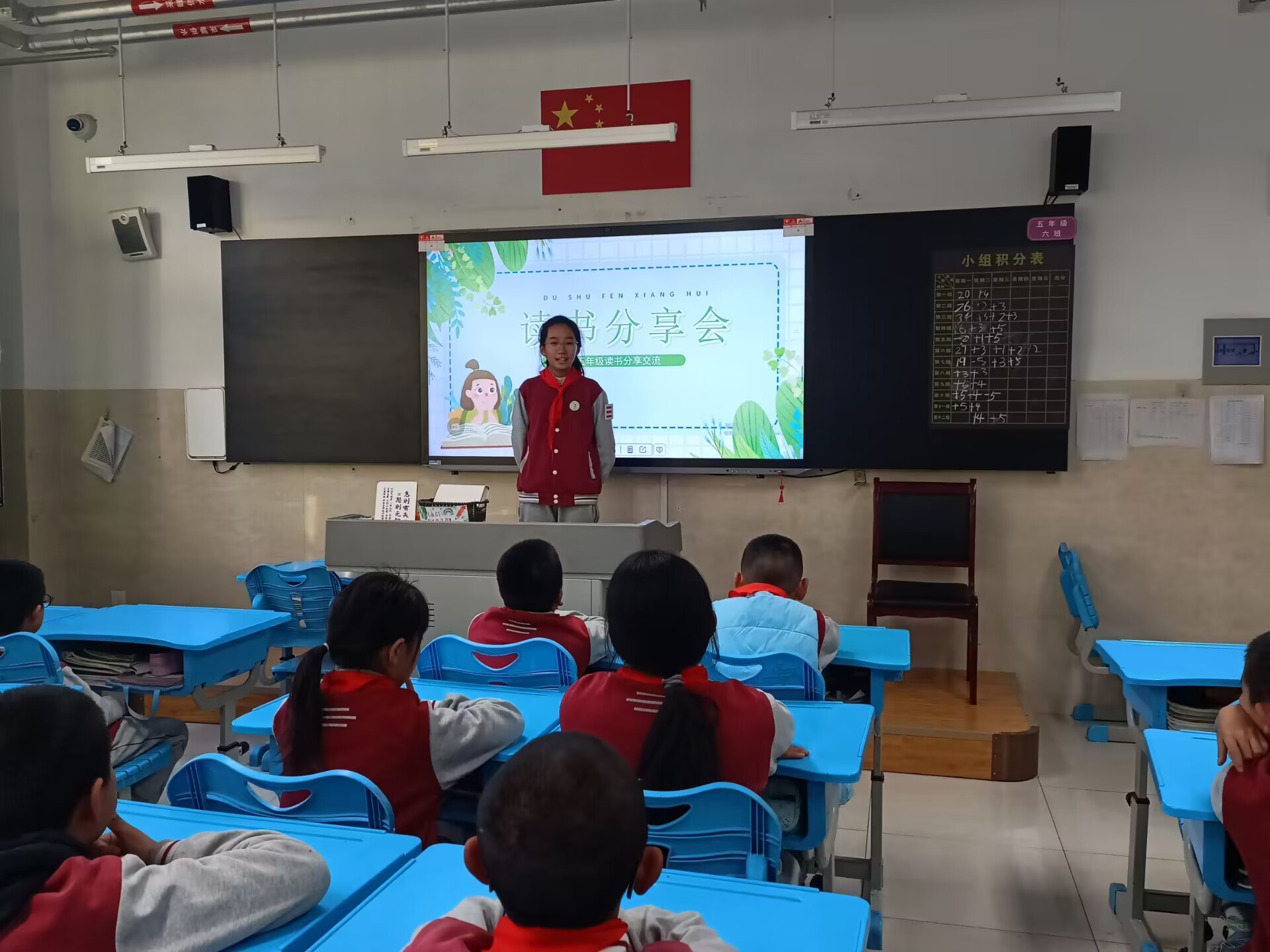 读书就是站在前人的肩膀上求知,只有读书才能站得更高,看得更远,行得更正。五年级师生在此次读书分享会中,享受着文字的美丽,品读着语言的滋味,触摸着语句的温度,感受着书本的芳香,共同的感受着阅读带来的智慧和力量。