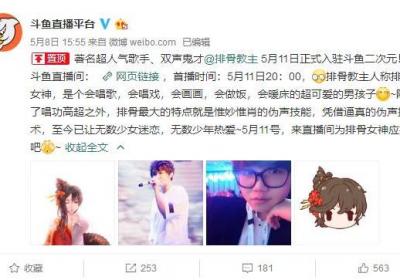 今晚8点锁定斗鱼直播间,人气歌手排骨教主首秀,二次元就看斗鱼,今晚8点锁定斗鱼直,播间,人气歌手排骨教,主首秀,二次元就看斗,鱼...