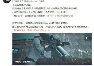 绝地求生5月22日维护公告 今天吃鸡更新多久到几点开服时间,绝地求生5月22日,维护公告 今天吃鸡更,新多久到几点开服时间...