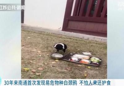 30年来南通首次发现易危物种白颈鸦 不怕人来还护食,30年来南通首次发,现易危物种白颈鸦 不,怕人来还护食...
