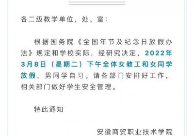 酸了!安徽一高校“三八”妇女节放假通知来了,酸了!安徽一高校“,三八”妇女节放假通知,来了...